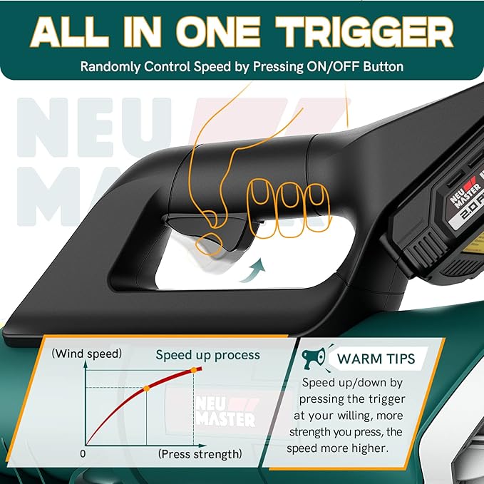 NEU MASTER Leaf Blower, 20V Battery Operated Leaf Blower Cordless Electric Blower with 2 x Battery and Fast Charger, Variable Speed Blower for Lawn Care, Patio, Yard, Jobsite