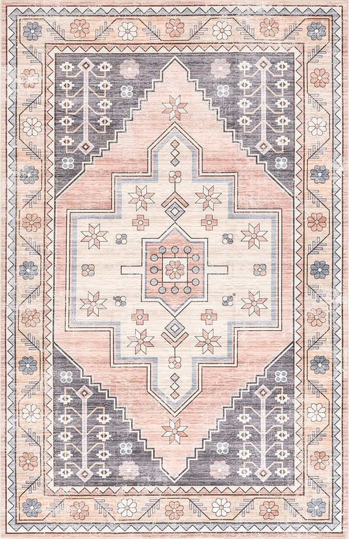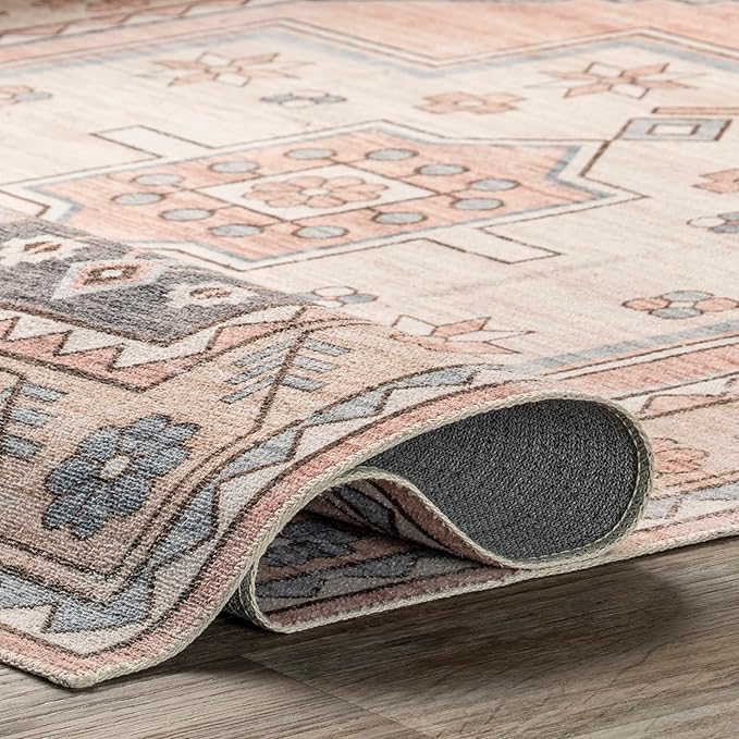 nuLOOM Catreena Transitional Floral Machine Washable Ultra Thin Area Rug, 5' x 8', Pink