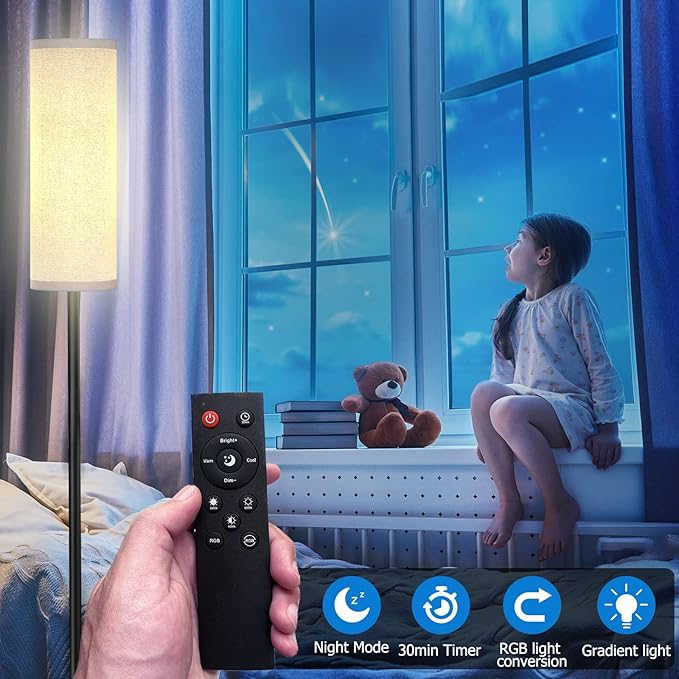Floor Lamp for Living Room Bedroom,Modern LED Floor Lamp with Remote Control and Stepless Dimmable Colors Temperature & Brightness,Standing Lamps Tall Lamp, 9W Bulb Included(White)