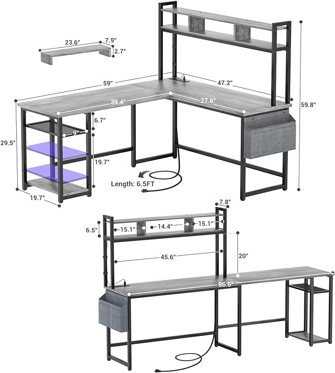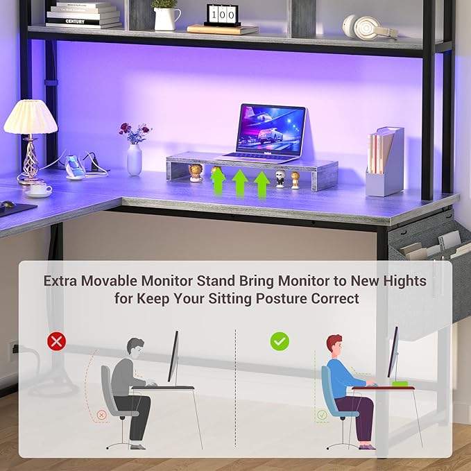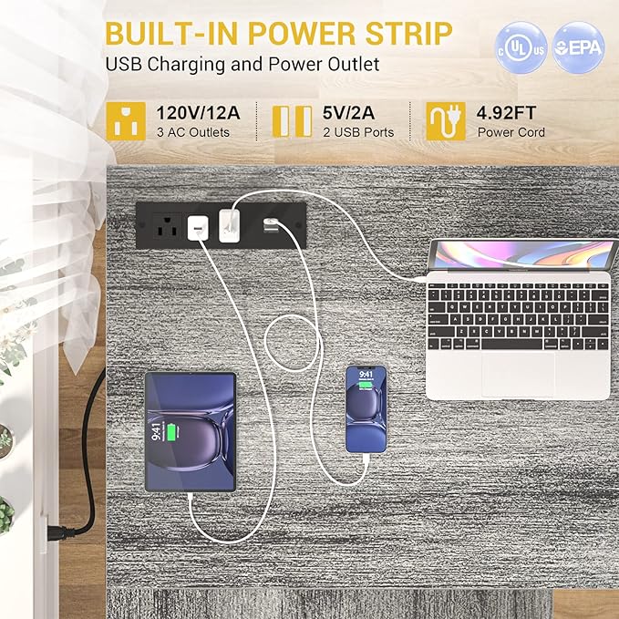 About This 【L Desk with Power Outlets& USB Ports】The L-shaped computer desk comes with 3 Outlets& 2 USB ports, which...