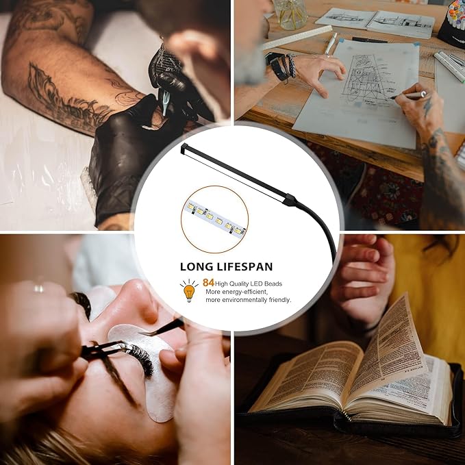 Bright LED Floor Lamp for Eyelash Extensions Adjustable Gooseneck Standing Eyelash Light Dimmable lash LED Lamp for Facial Spa Salon Makeup Reading Floor Lamp for Bedroom Office Black