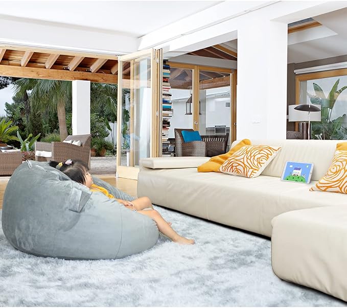Bean Bag Chair Cover, Stuffed Animal Storage, Plush Toys Organizer Holder, Beanbag Chairs Cover for Kids Teans and Adults Super Soft and Comfortable Fabric X-Large with Handle and Zipper -Round Grey
