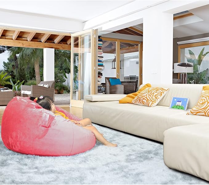 Bean Bag Chair Cover, Stuffed Animal Storage, Plush Toys Organizer Holder, Beanbag Chairs Cover for Kids Teans and Adults Super Soft and Comfortable Fabric X-Large with Handle and Zipper -Round Pink