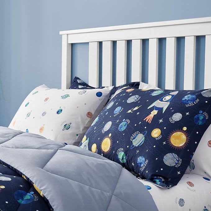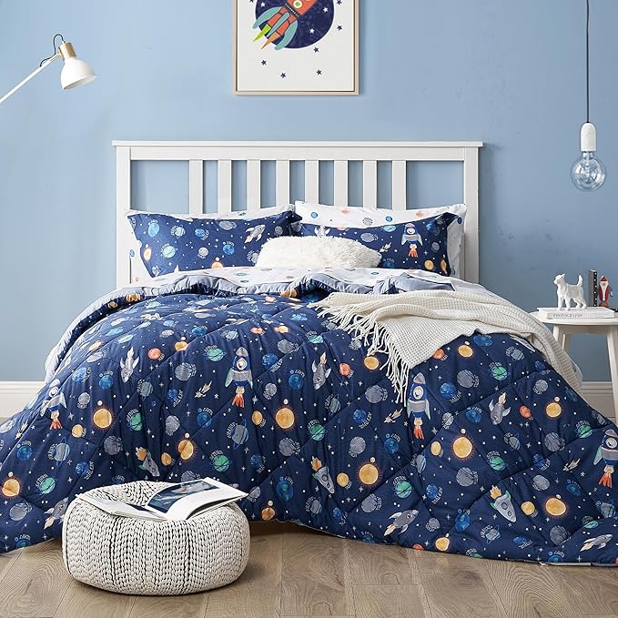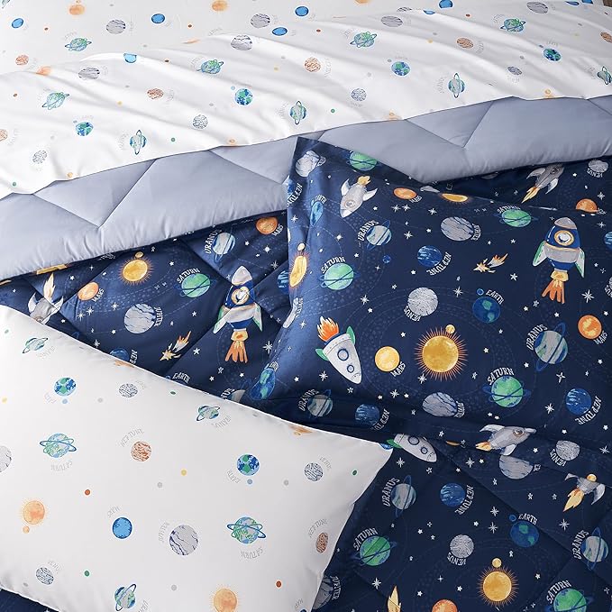 Kids Bedding Set for Boys, Twin Size 5 Pieces Space Themed Bed in a Bag, Super Soft Lightweight Microfiber Comforter Set with Sheets, Hotel Quality Durable Children Bed Set