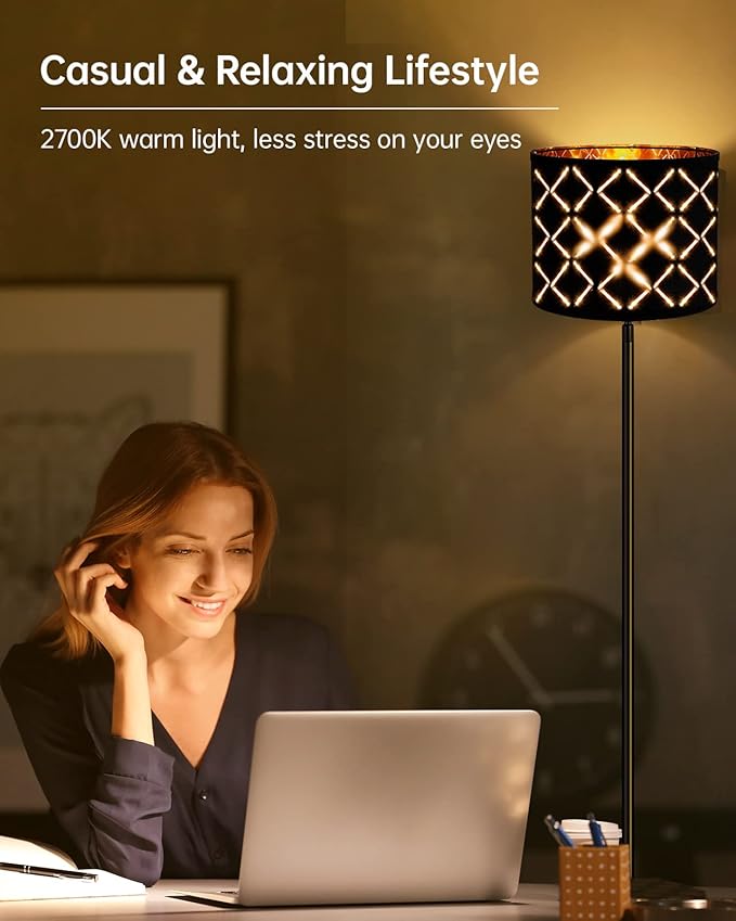 About This 【Easy Assembly and premium quality】Made with a black metal body and a black lampshade, the vintage floor lamp...