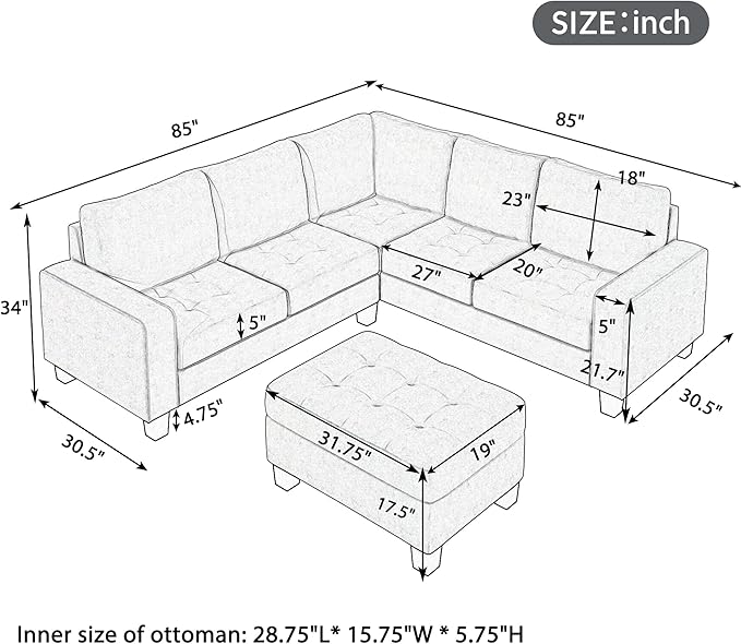 About This Linen+foam ✔Stylish Modern Look: Designed in L-shaped for essential space saving and functionality, capable of fitting into cornered...