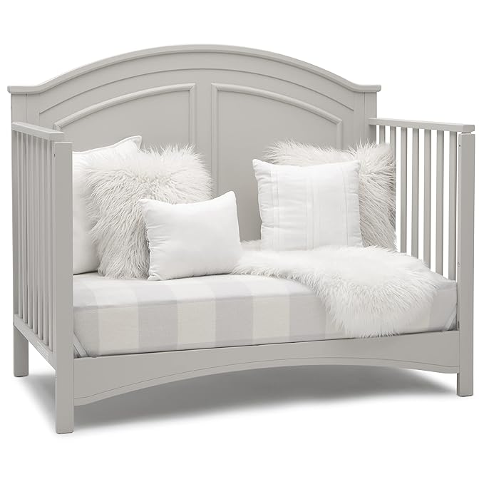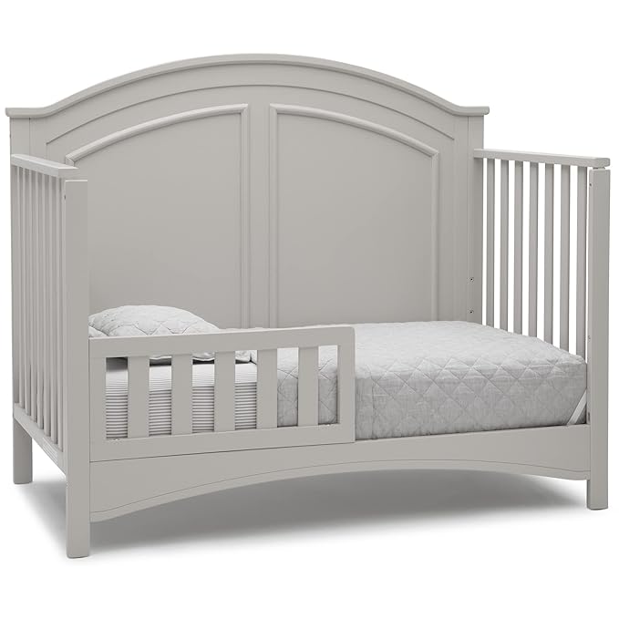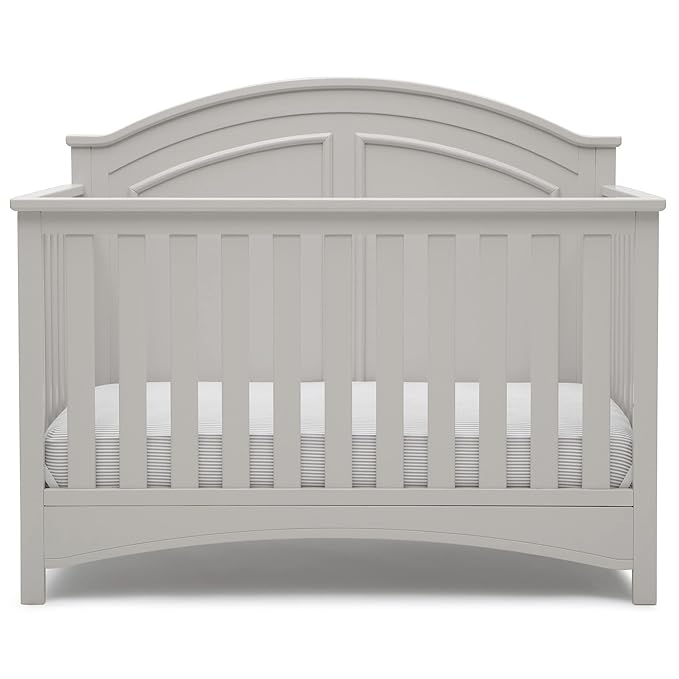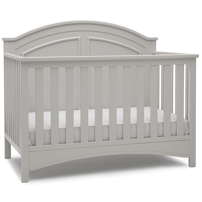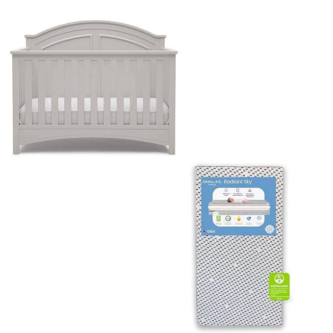 Delta Children Perry 6-in-1 Convertible Crib - Greenguard Gold Certified, Moonstruck Grey + Simmons Kids Radiant Sky Dual Sided Baby Crib Mattress and Toddler Mattress (Bundle)