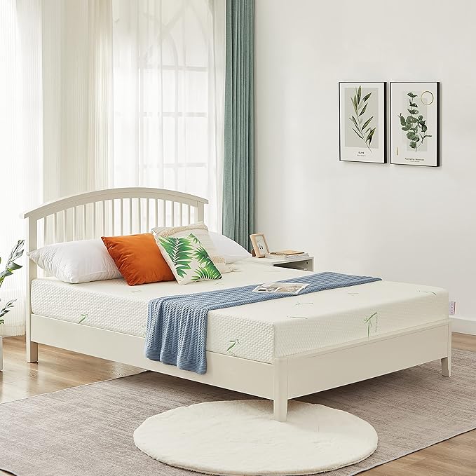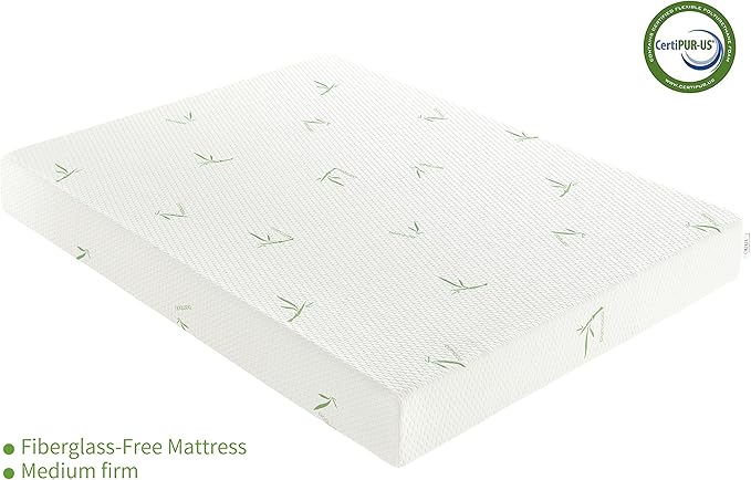 Queen Mattress, 5 Inch Gel Memory Foam Mattress for Cool Sleep Pressure Relief Bamboo Breathable Cover Medium Firm Queen Size Mattress in a Box, White, CertiPUR-US Certified