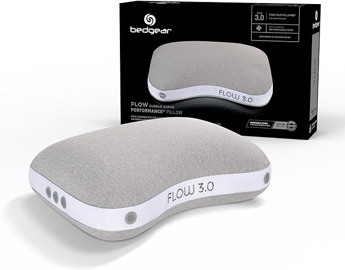 Bedgear Flow Cuddle Curve Pillow - Size 3.0 - Breathable Side Sleeper Pillow - Soft Bed Pillow - Hypoallergenic and Removable Cover - 20" W x 26" L x 6.5" H