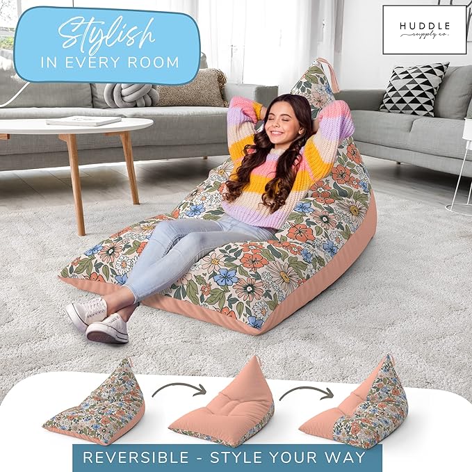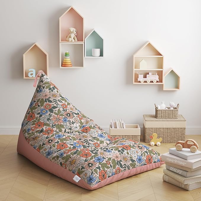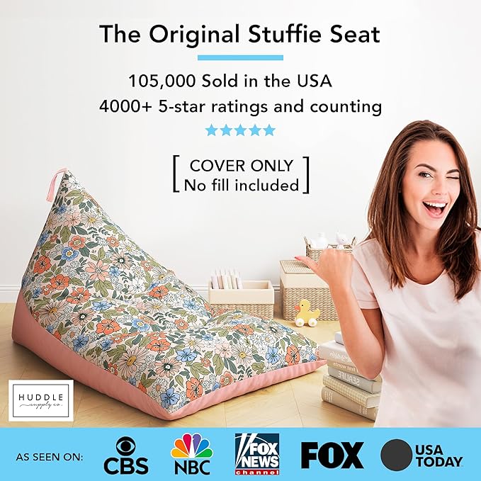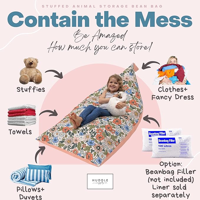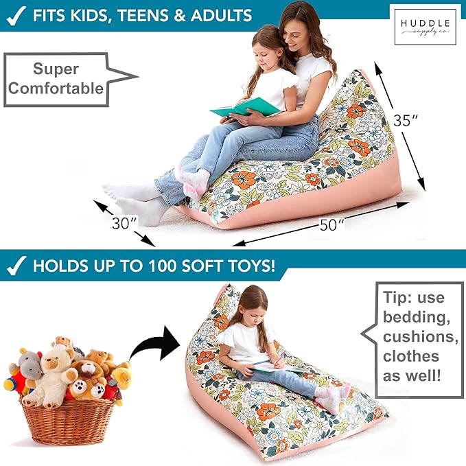 Stuffed Animal Bean Bag Storage - Machine Washable Bean Bag Chair for Kids - Extra Large Cover for Stuffing with Plush Toys, Pillows, Soft Items - Stuffed Animal Holder for Boys & Girls - Boho Floral