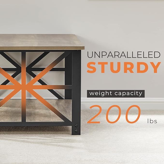 About This STURDY CONSTRUCTION:Coffee table with X shape support legs ensure durability;sturdiness and weight capacity up to 200 pounds. High...