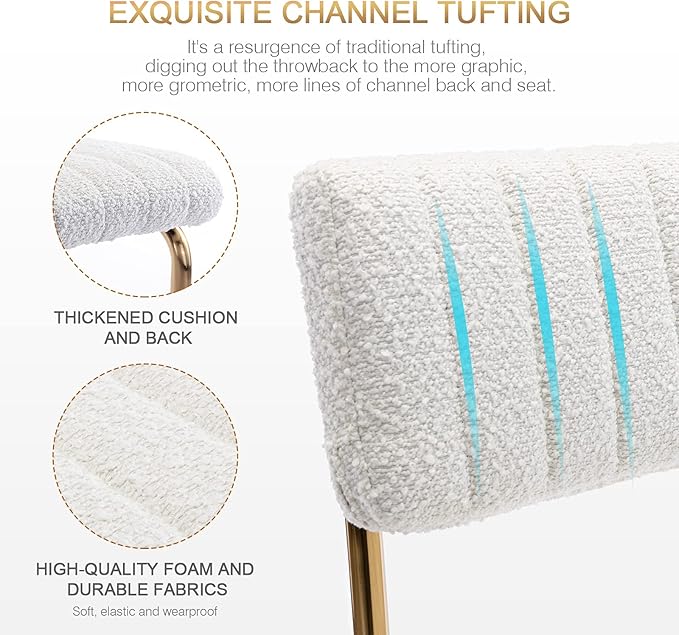 Zesthouse Mid Century Dining Chairs Set of 4, White Boucle Dining Room Chairs with Gold Legs, Upholstered Armless Accent Chairs Side Chairs for Living Room