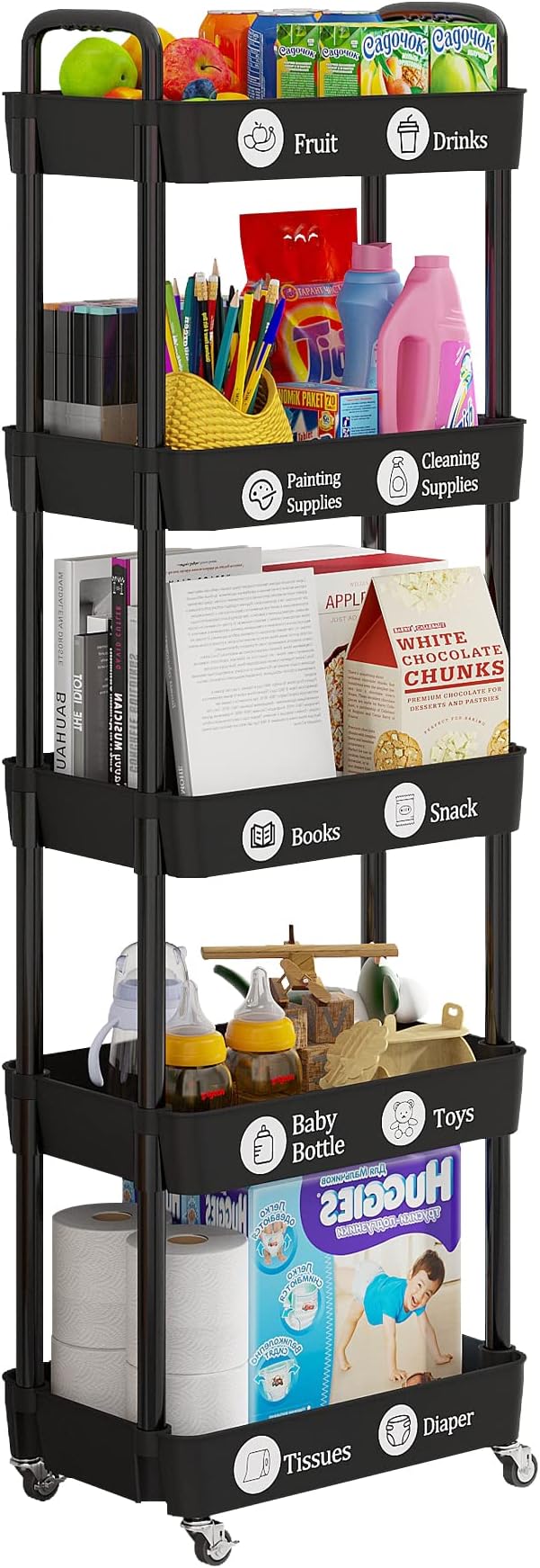 Storage Cart,Multifunction Utility Rolling Cart Kitchen Storage Organizer,Mobile Shelving Unit Cart with Lockable Wheels for Bathroom,Laundry,with Classified Stickers