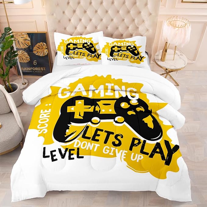 Gaming Comforter for Boys Teen Game Contoller Bedding Set for Kids Lightweight Alternative Quilt for All Season Gamer Home Decor for Kids Bedding
