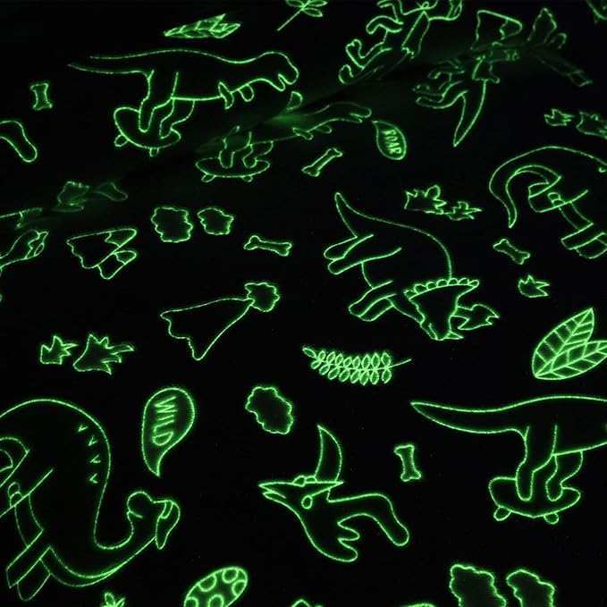 HOMBYS Glow in The Dark Comforter Set 5 Piece Twin/Twin XL with Sheets, Blue Dinosaur Velvet Bedding Comforter Sets for Twin Bed, Ultra Soft Down Alternative Comforter for Boys Kids, Bed in a Bag