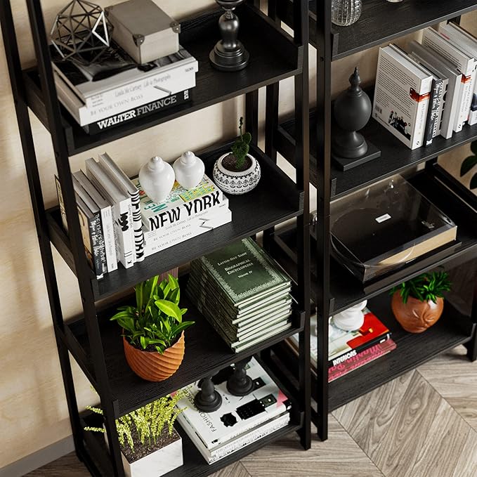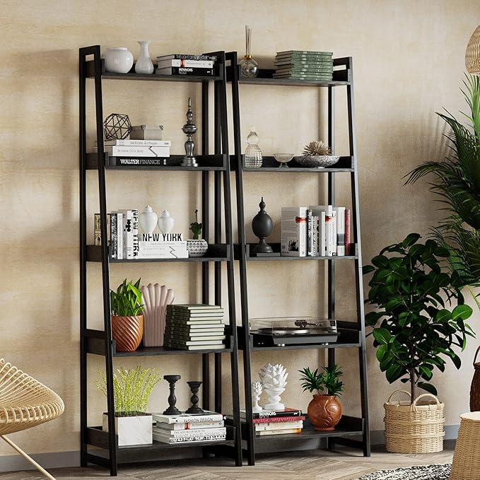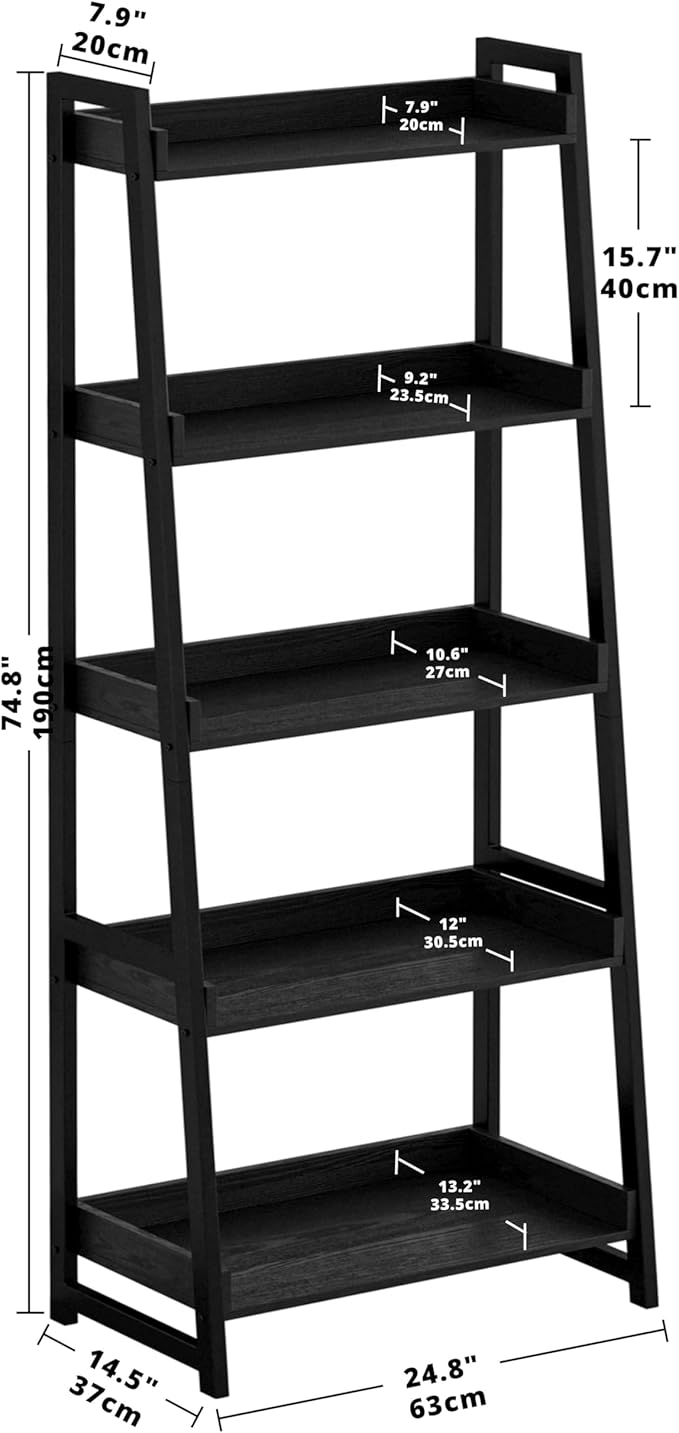 IRONCK Industrial Bookshelf 5-Tier, Bookcase Ladder Shelf, Storage Shelves Rack Shelf Unit, Accent Furniture Metal Frame, Home Office Furniture for Bathroom, Living Room