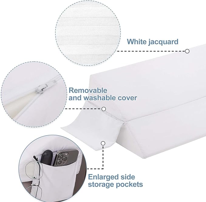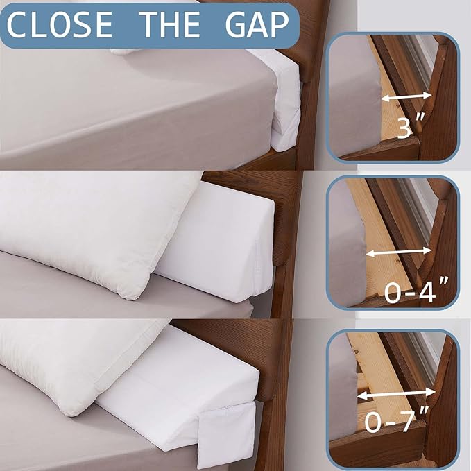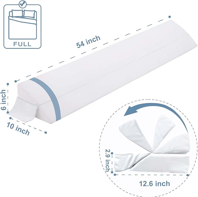 Limthe Full Bed Wedge Pillow Stopper,Bed Gap Filler (0-7"),Headboard Pillow,Mattress Gap Cover,Adjustable Foam Wedge Pillow Fill Gap Between Headboard/Wall and Mattress, (White 54"x10"x6")
