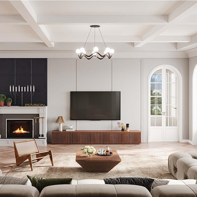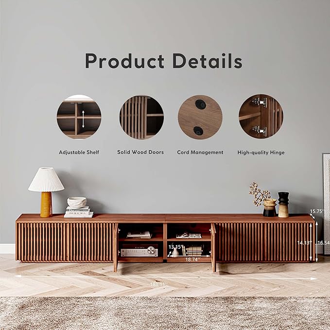 POVISON Wood TV Stand, 118” Extra-large Entertainment Center for 100 inch TV, Modern Living Room Media Console with Storage, Farmhouse Slatted Solid Ash Low Cabinets
