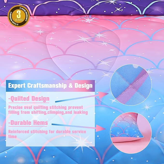 JQinHome Twin Size Mermaid Comforter Set, 6 Piece Bed in A Bag 3D Colorful Bedding Set for Girls kids (1 Comforter,2 Pillowcases,1 Flat Sheet,1 Fitted Sheet,1 Cushion Cover)(Pink Mermaid Scale)