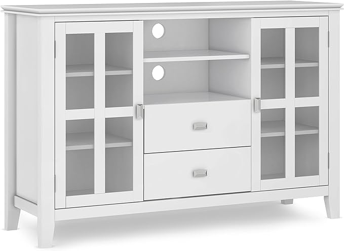 SIMPLIHOME Artisan SOLID WOOD 53 Inch Wide Contemporary TV Media Stand in White for TVs up to 60 Inches, For the Living Room and Entertainment Center