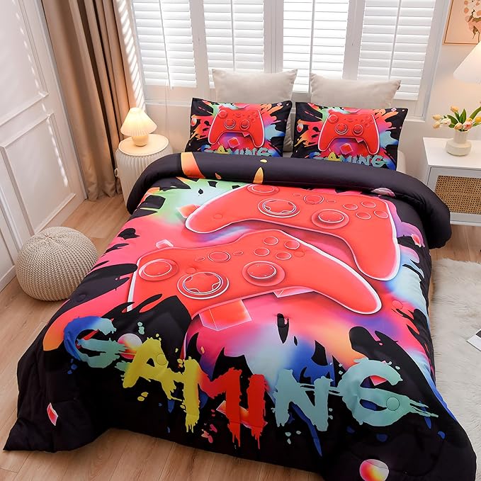 About This 【CREATIVE DESIGN】 Our Gamer Gamepad Unique Chic Design Bedding Sets & Collections Adopt Environmentally Friendly Reactive Printing and...