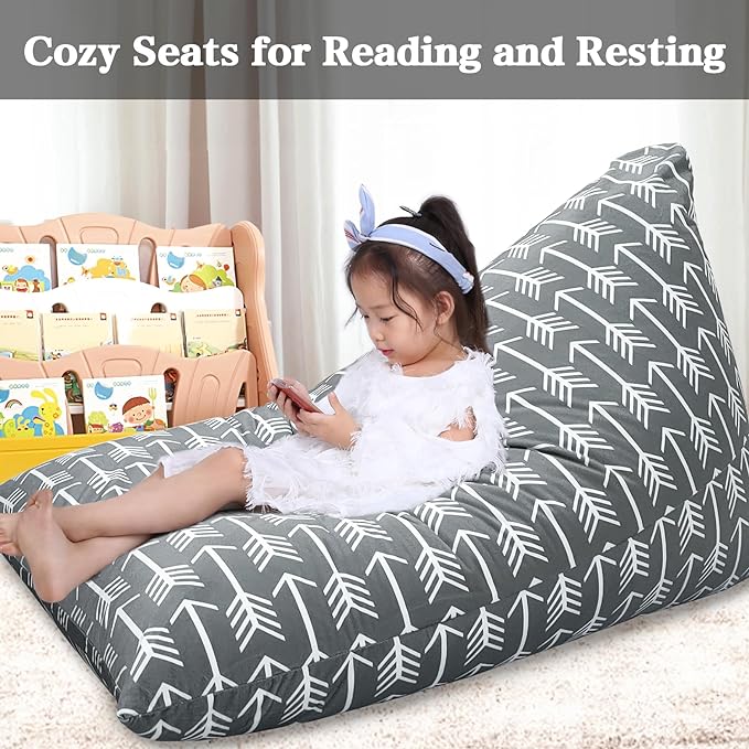 Jorbest Stuffed Animal Storage Bean Bag Chair for Kids and Adults, Bean Bag Stuffed Animal Storage, Stuffed Animal Bean Bag Velvet Stuffie Seat - Cover ONLY (Grey with White Arrows 200L/52 Gal)