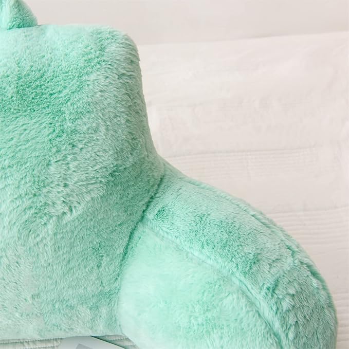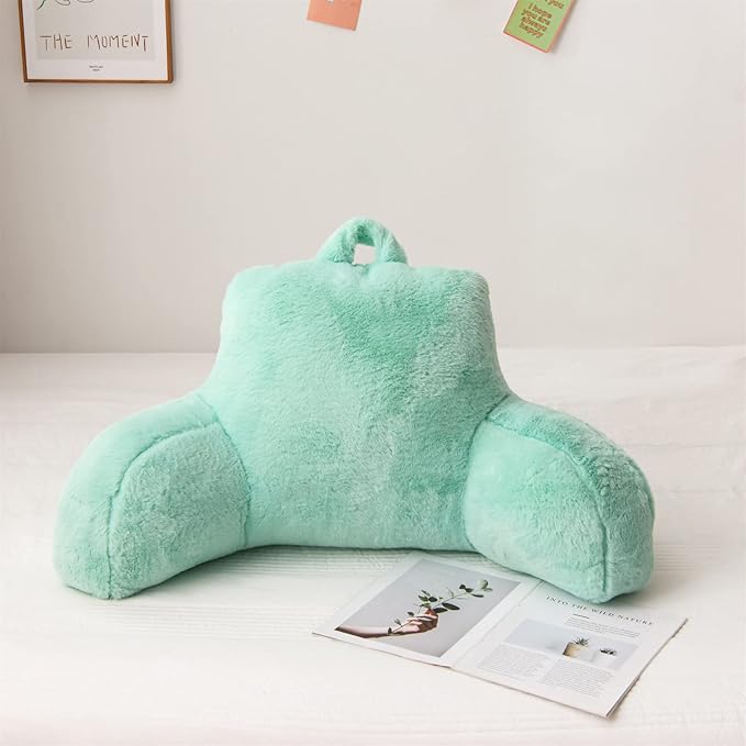 Aimuan Reading Pillow Bed Rest Pillow with Arms Rabbit Fur Cushion for Adults Teens Incline Rest Sitting up & Sleeping Snoring Pillow with Pregnancy Lumbar Back Support (Standard, Green)