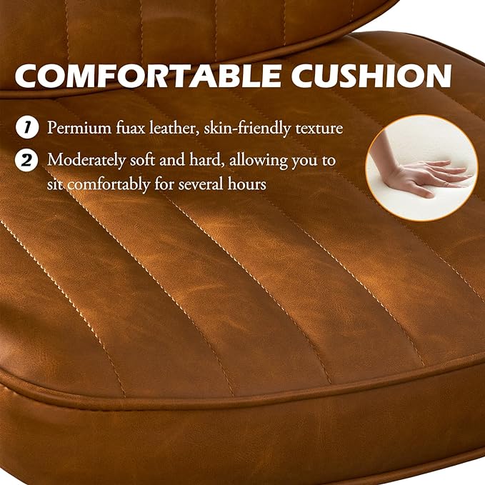 Arts wish Mid Century Office Chair Leather Desk Chair Brown Office Desk Chair Home Office Chair with Wheels and Arms