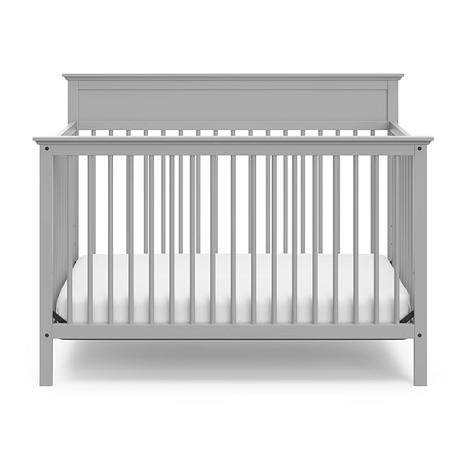 Storkcraft Carmel 5-in-1 Convertible Crib (Pebble Gray) - GREENGUARD Gold Certified, Converts to Toddler Bed & Full-Size Bed, Fits Standard Full-Size Crib Mattress, 4 Adjustable Mattress Heights