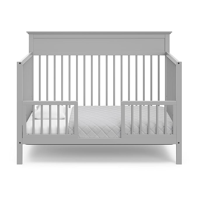 About This 5-IN-1 CONVERTIBLE CRIB: Converts from baby crib (mattress sold separately) to toddler bed (Toddler Safety Guardrail Kit sold...