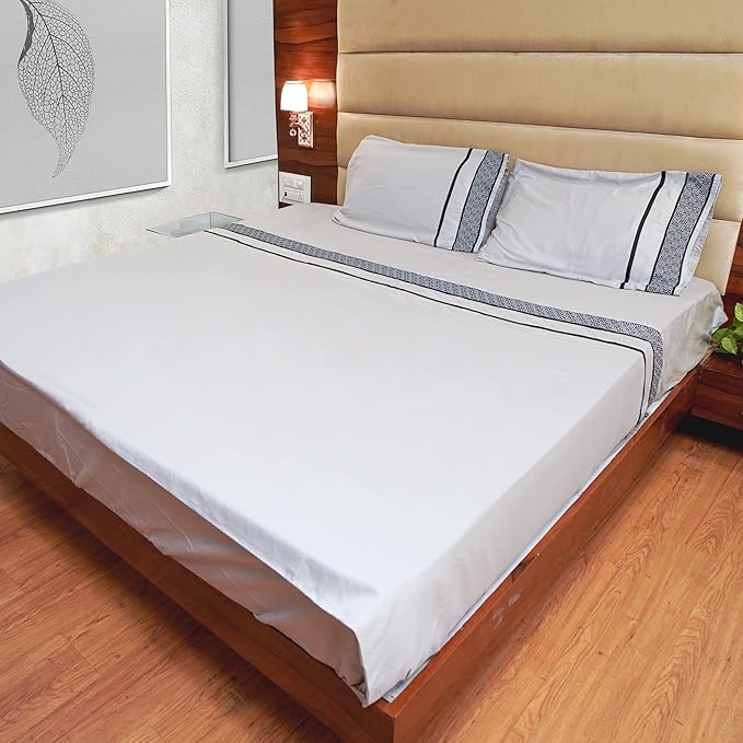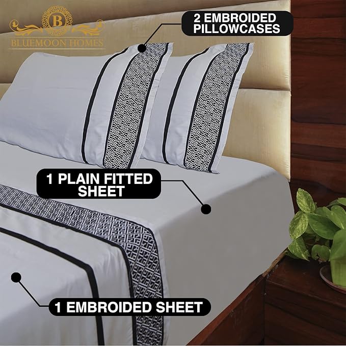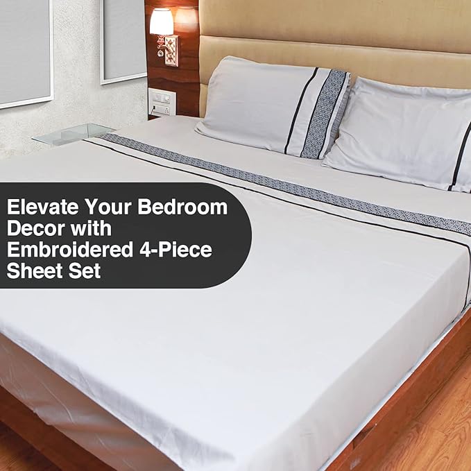 Egyptian Cotton Sheets Cal King Size - 1000 TC 4 Pc California King Sheets, Smooth Sateen Weave Sheets, 18" Deep Pocket, Ultra Luxury Sheets, Cal King Sheet Set - Black Embroidered Light Grey Sheets