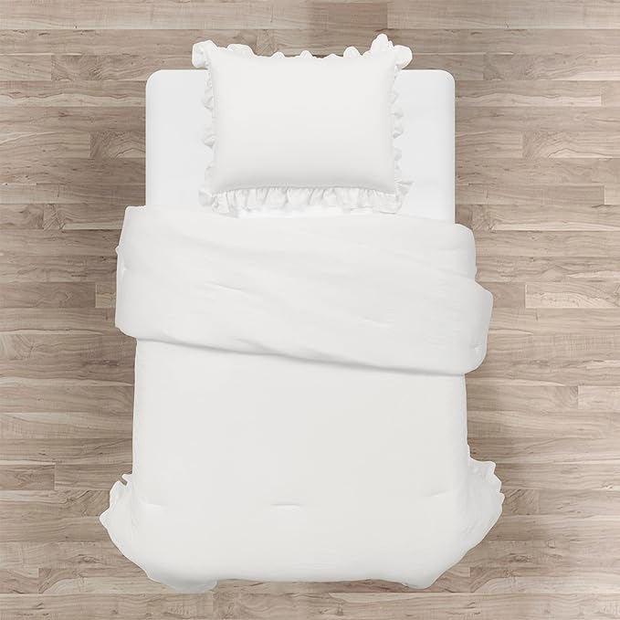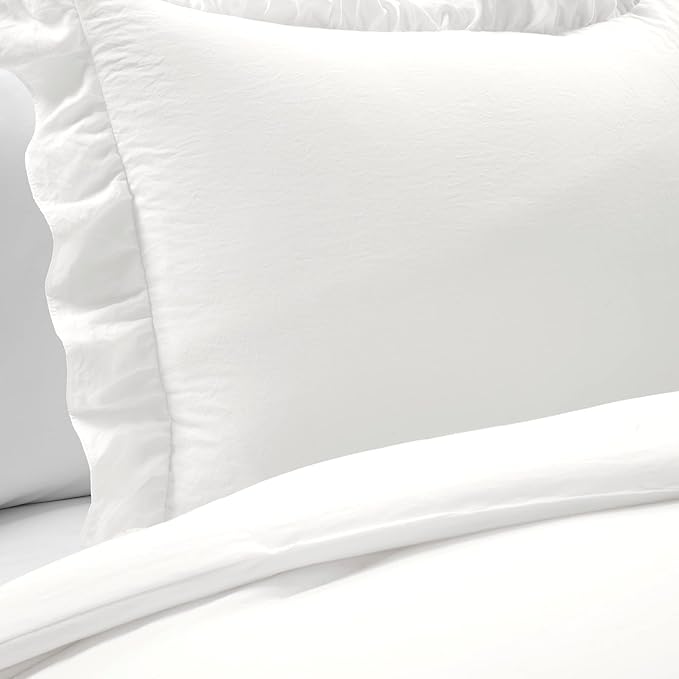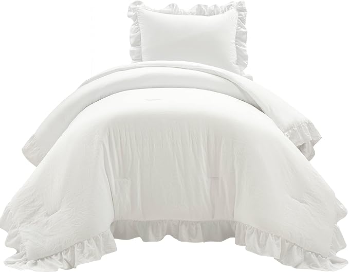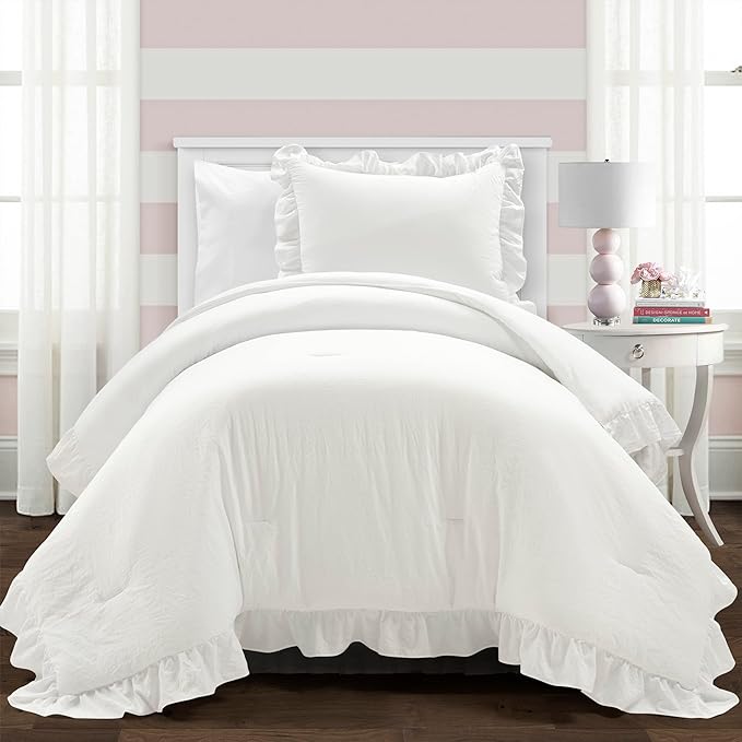Lush Decor Reyna Ruffle Comforter Set - 2 Piece Cozy Ruffled Bedding Set - Timeless Elegance and Comfort for Dorm Room - Twin XL, Pure White