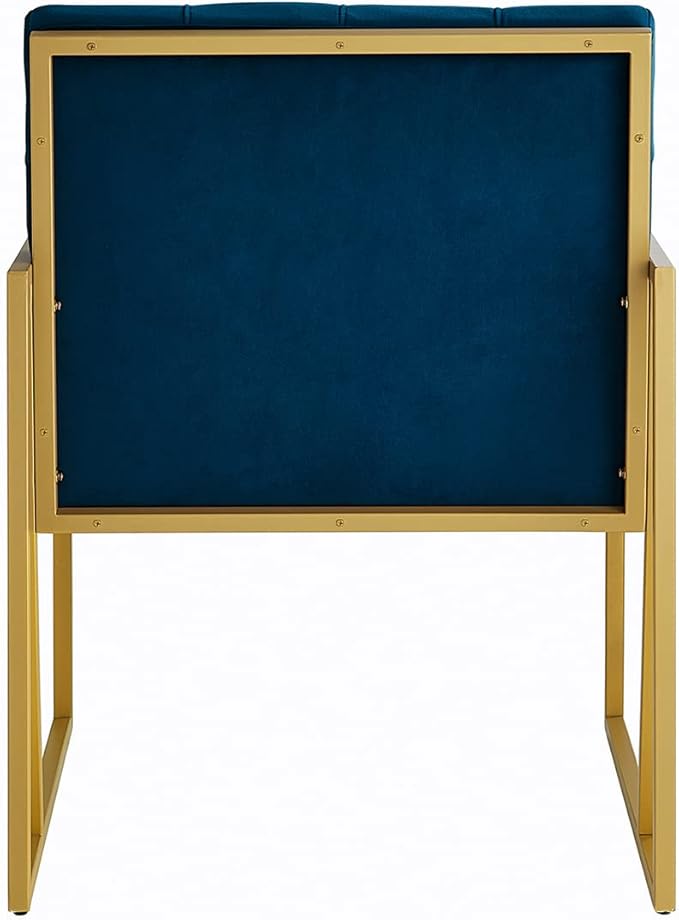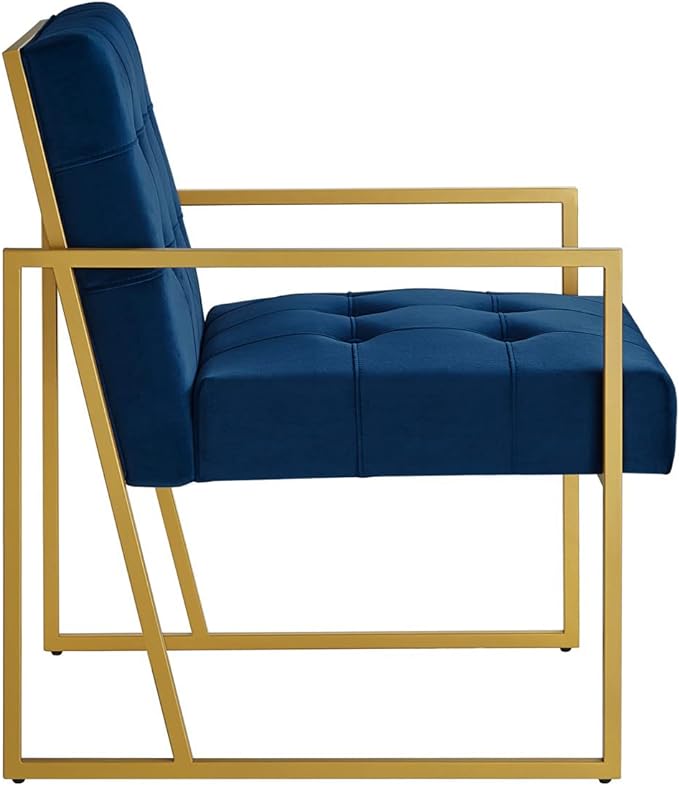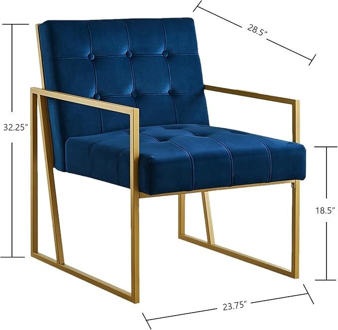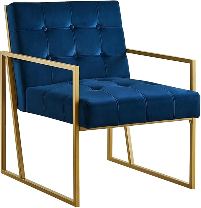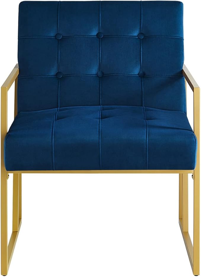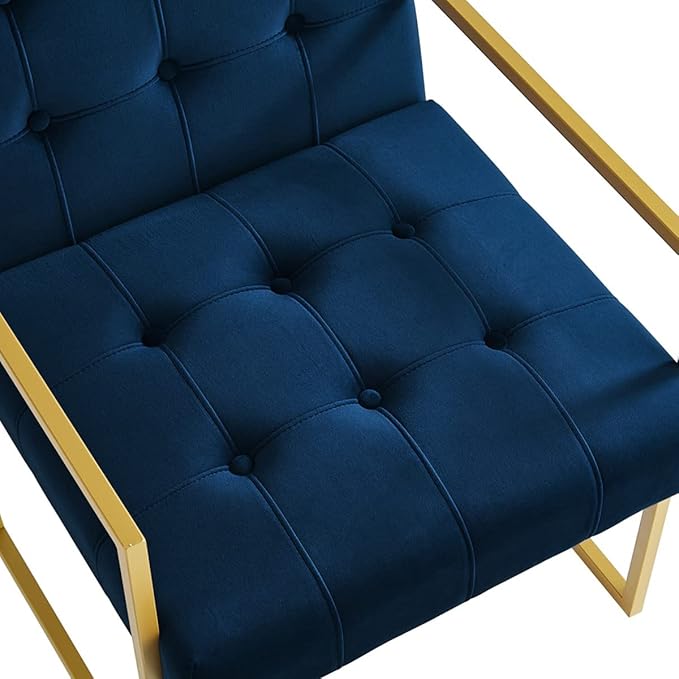 24KF Modern Navy Velvet Button Tufted Accent Chair with Golden Metal Stand, Decorative Furniture Chairs for Living Room Bedroom - Navy