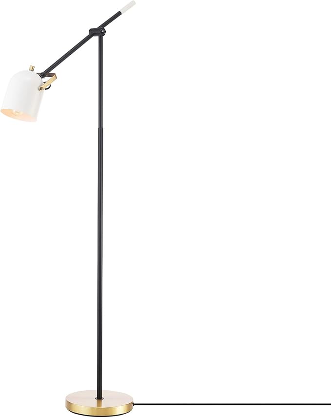 Globe Electric 65910 65" Floor Lamp, Matte Black, Brass Accents, White Shade, On/Off Rotary Switch on Head