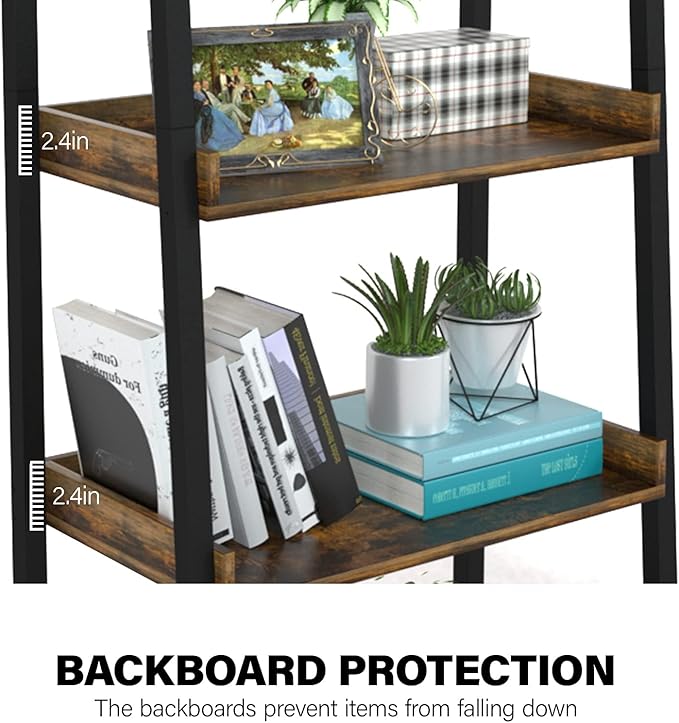 ASTARTH Ladder Shelf-5 Tier Bookshelves w/Open Shelf for Storage, Industrial Bookshelf & Tall Ladder Shelf-Metal Frame for Bedroom, Living Room, Kitchen-67.3'' H, Easy Assembly, Rustic Brown