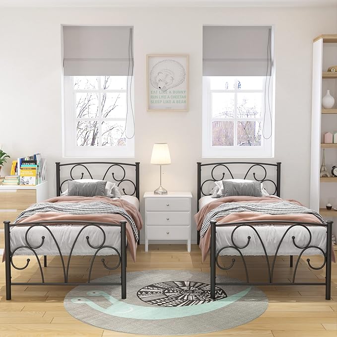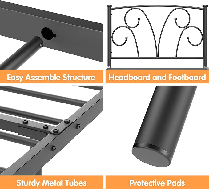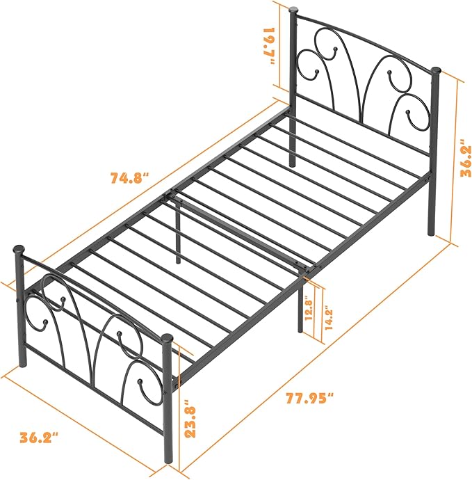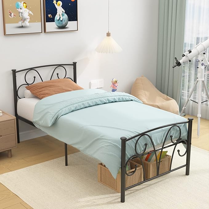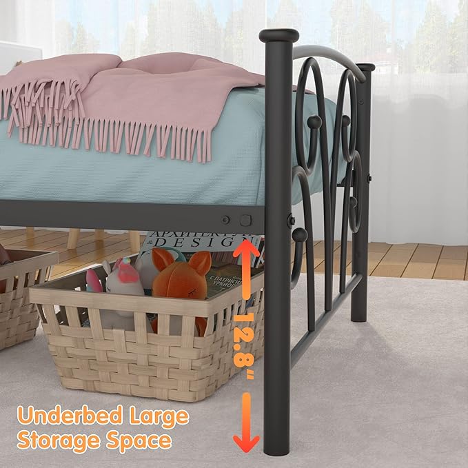 Timy Kids Twin Bed Frame with Headboard and Footboard, Metal Platform Bed Frame with 12 Inch Storage Space for Boys Girls Teens Adults, No Box Spring Needed, Black
