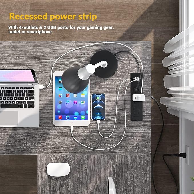 About This 【USB Charging Ports & Power Outlets 】The L-shaped computer desk is built in 4 power outlets and 2...