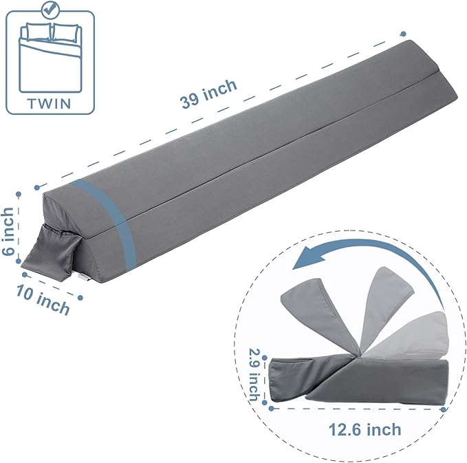 Limthe Twin Bed Wedge Pillow Stopper,Bed Gap Filler (0-7"),Headboard Pillow,Mattress Gap Cover,Adjustable Foam Wedge Pillow Fill Gap Between Headboard/Wall and Mattress, (Grey 39"x10"x6")