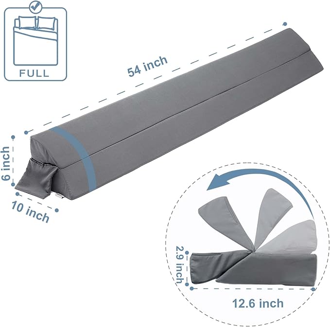 Limthe Full Bed Wedge Pillow for Headboard,Bed Gap Filler (0-7"),Headboard Pillow,Mattress Gap Filler,Adjustable Foam Wedge Pillow Close The Gap Between Headboard/Wall and Mattress, (Grey 54"x10"x6")