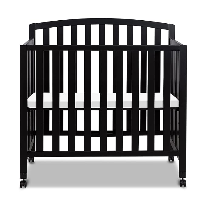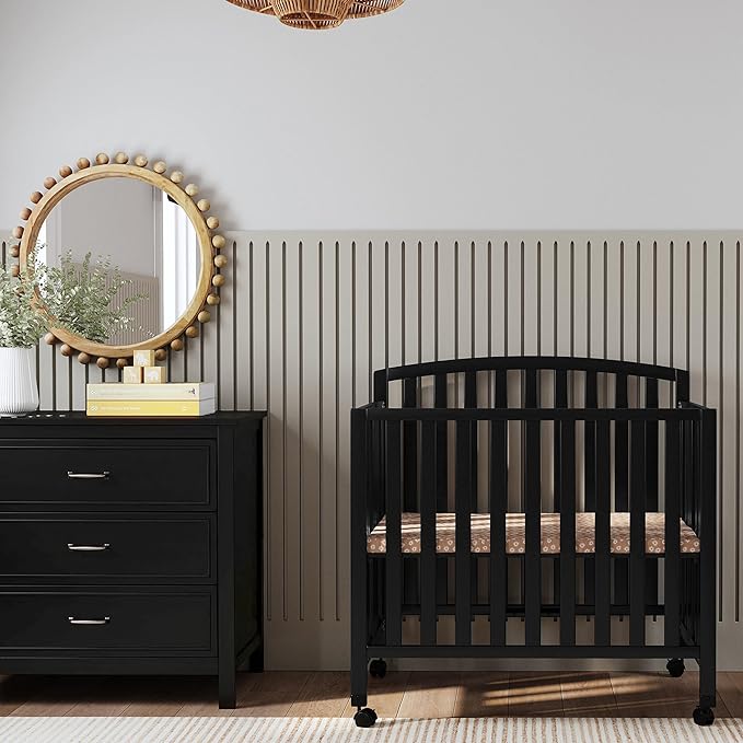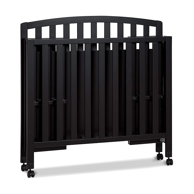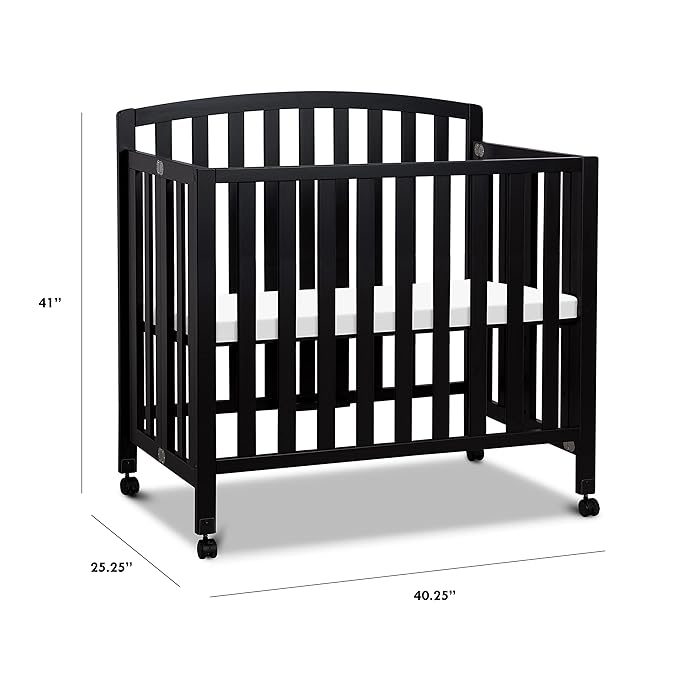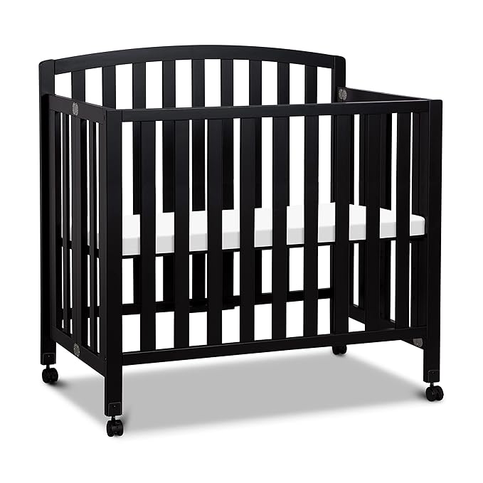 DaVinci Dylan Folding Portable 3-in-1 Convertible Mini Crib and Twin Bed in Ebony, Greenguard Gold Certified