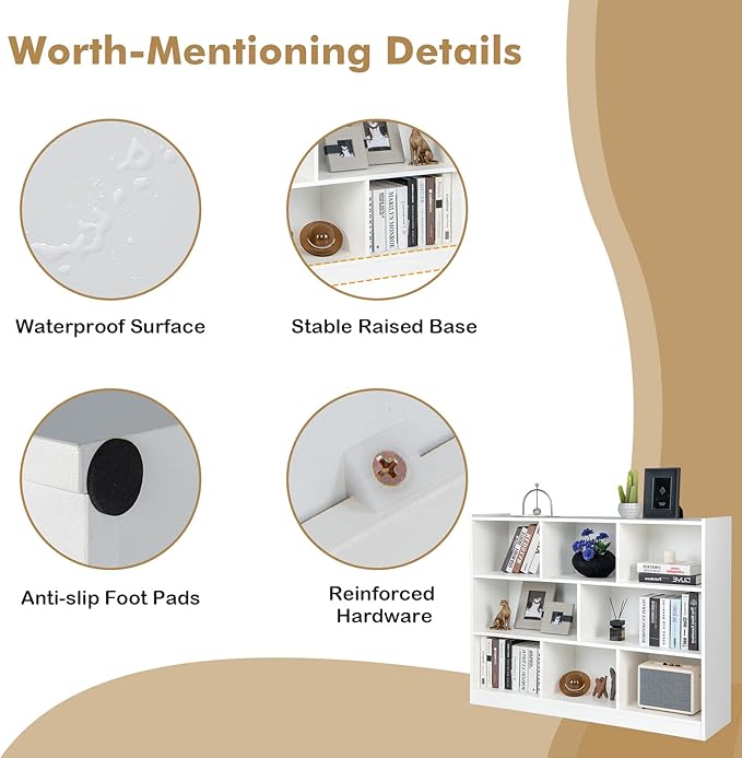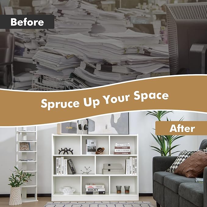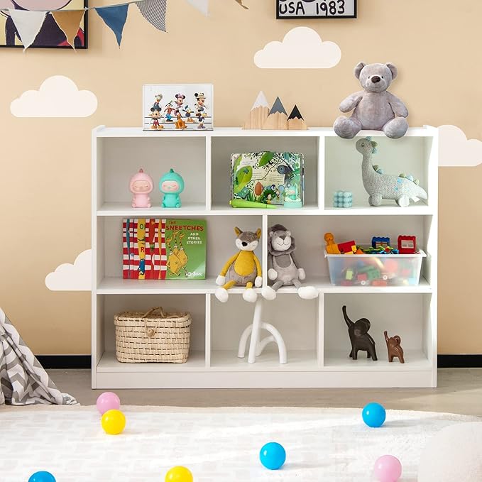 Giantex Wood 8 Cube Bookcase, Open Freestanding 3-Tier Bookshelf, Multipurpose Display Shelf for Living Room, Bedroom, Children's Playroom, Reading Room