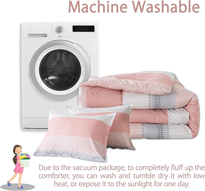 Andency Stripe Comforter Set Queen Size (90x90 Inch), 3 Pieces Pink Patchwork Striped Comforter, Soft Microfiber Down Alternative Comforter Bedding Set with Corner Loops