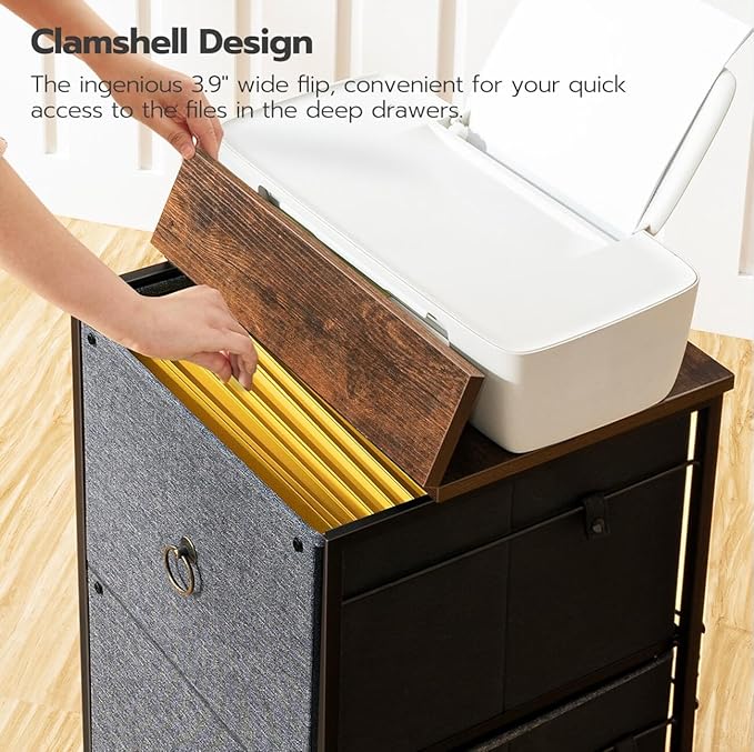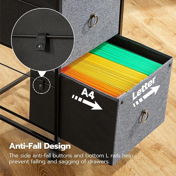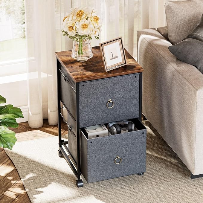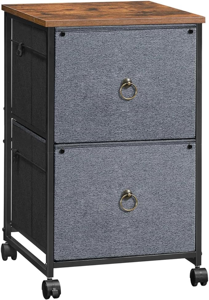 HOOBRO 2 Drawer Mobile File Cabinet, Rolling Printer Stand, Vertical Filing Cabinet, Office Cabinet, Filing Cabinet for Home Office, A4/Letter Size, Nonwovens Drawer, Rustic Brown and Gray BFG20WJ01