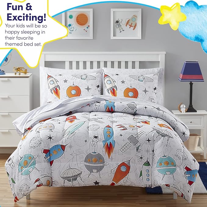 Kids Bedding Set Bed in a Bag for Boys and Girls Toddlers Printed Sheet Set and Comforter , Twin, Floating in Space