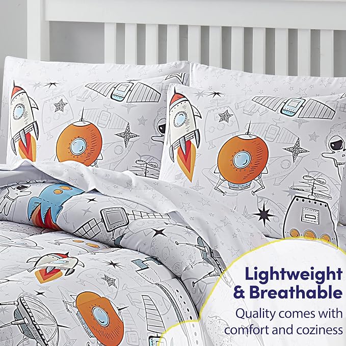 Kids Bedding Set Bed in a Bag for Boys and Girls Toddlers Printed Sheet Set and Comforter , Full, Floating in Space
