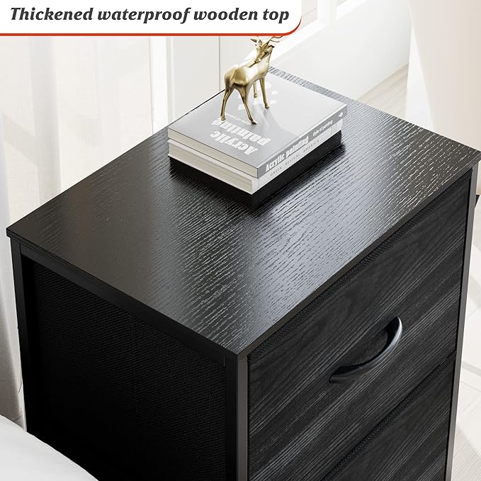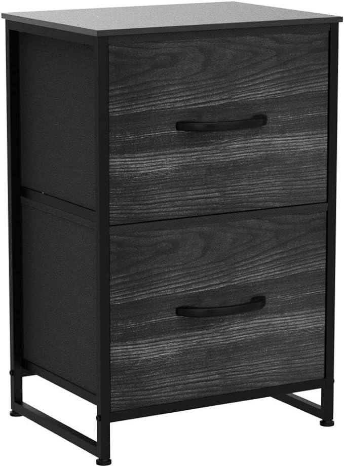 Nicehill Nightstand, Small Dresser, Bedside Furniture, Night Stand End Table with Storage Drawers for Bedroom, Black Wood Grain