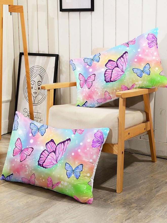 Datura home Bedding Comforter Set Rainbow Watercolor Butterfly Printed Pattern Quilt with 1 and 2 Pillowcases for Girls Bedroom All Season(Butterfly Queen) Queen 90x90inches