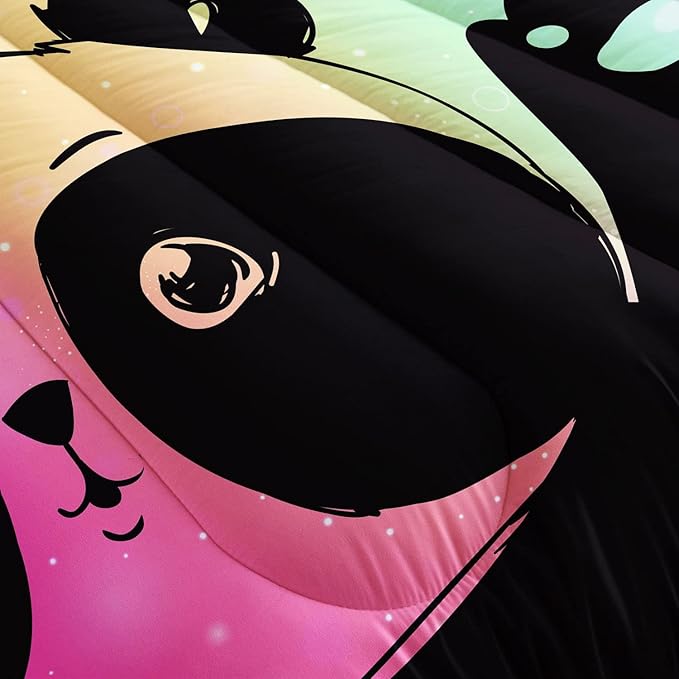Datura home Bedding Comforter Set Rainbow Kawaii Cute Panda Printed Pattern with 1 and 2 Pillowcases for Girls Bedroom All Season(Panda Full) Full 80x90inches