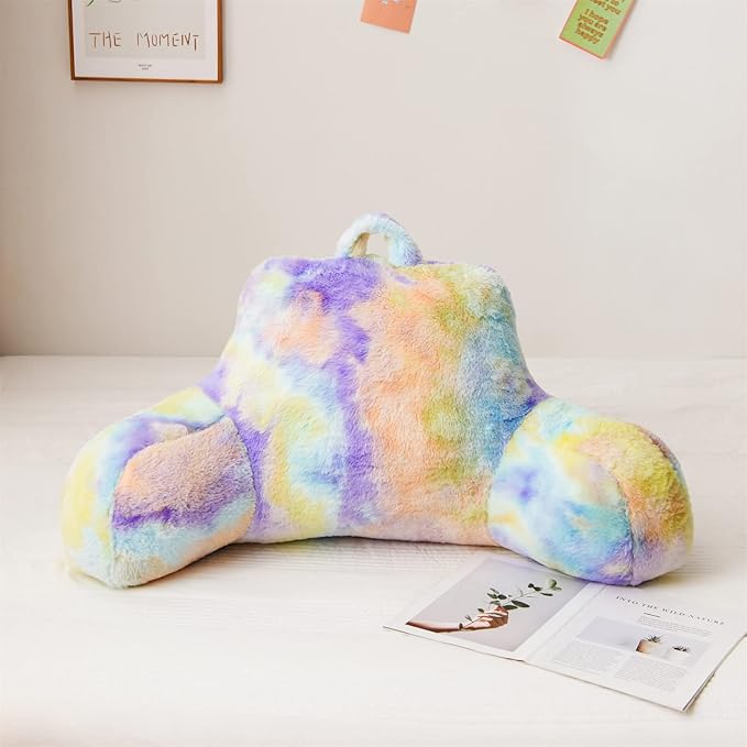A Nice Night Faux Fur Reading Pillow Bed Wedge Large Adult Children Backrest with Arms Back Support for Sitting Up in Bed/Couch for Bedrest,Tie Dyed Purple