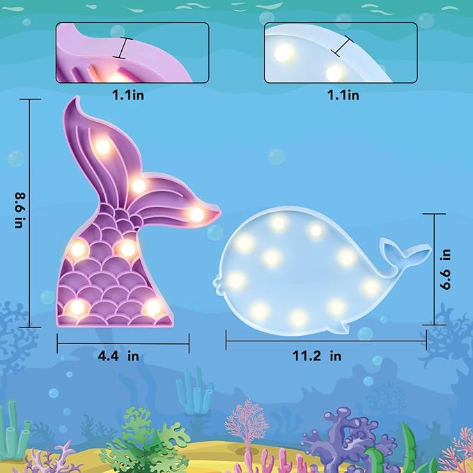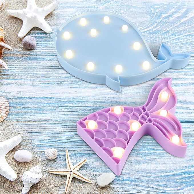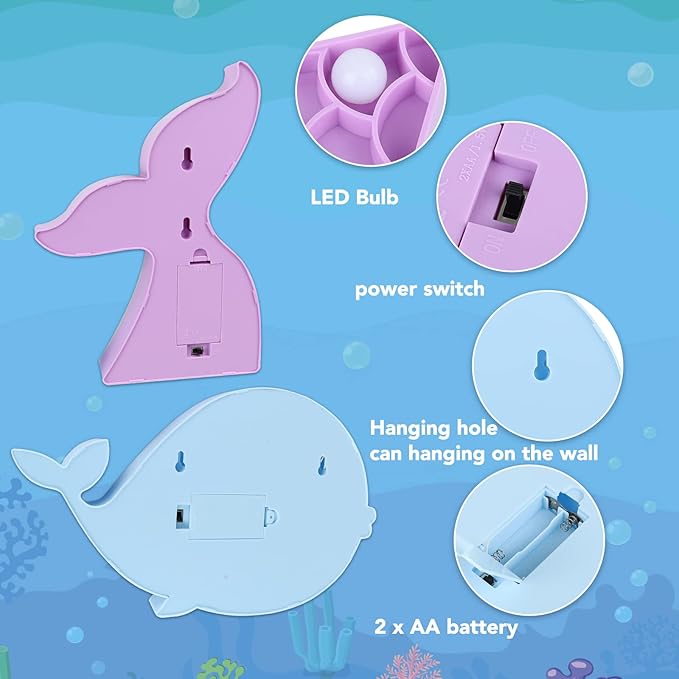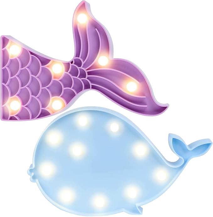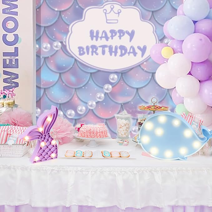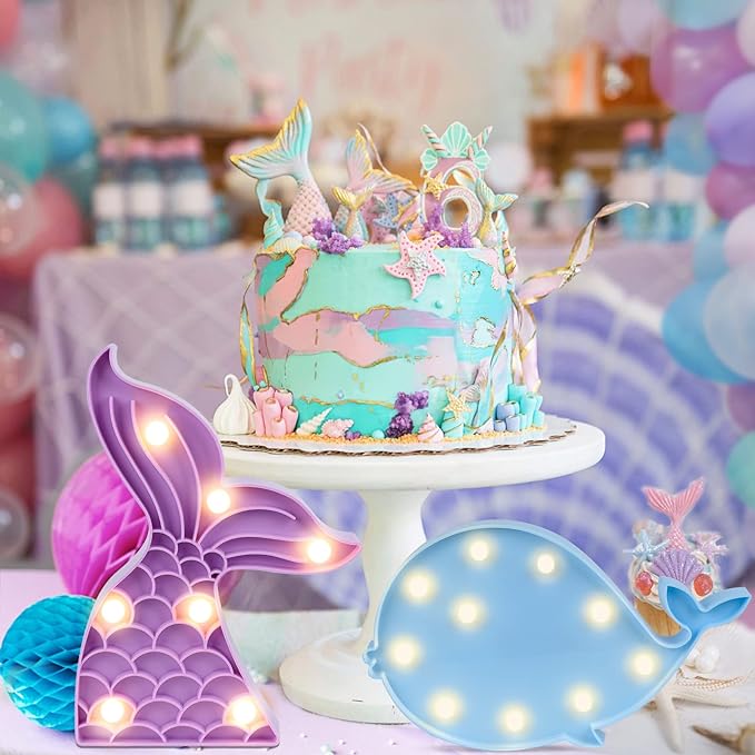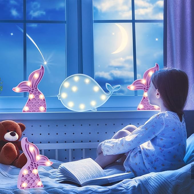 AceList Mermaid Birthday Decorations,Mermaid Ocean Party Supplies,LED Cute Mermaid Tail Night Light, Whale Table Night Lamp for Nursery Room,Bedroom,Wall Decor,Christmas,Birthday Gift for Baby